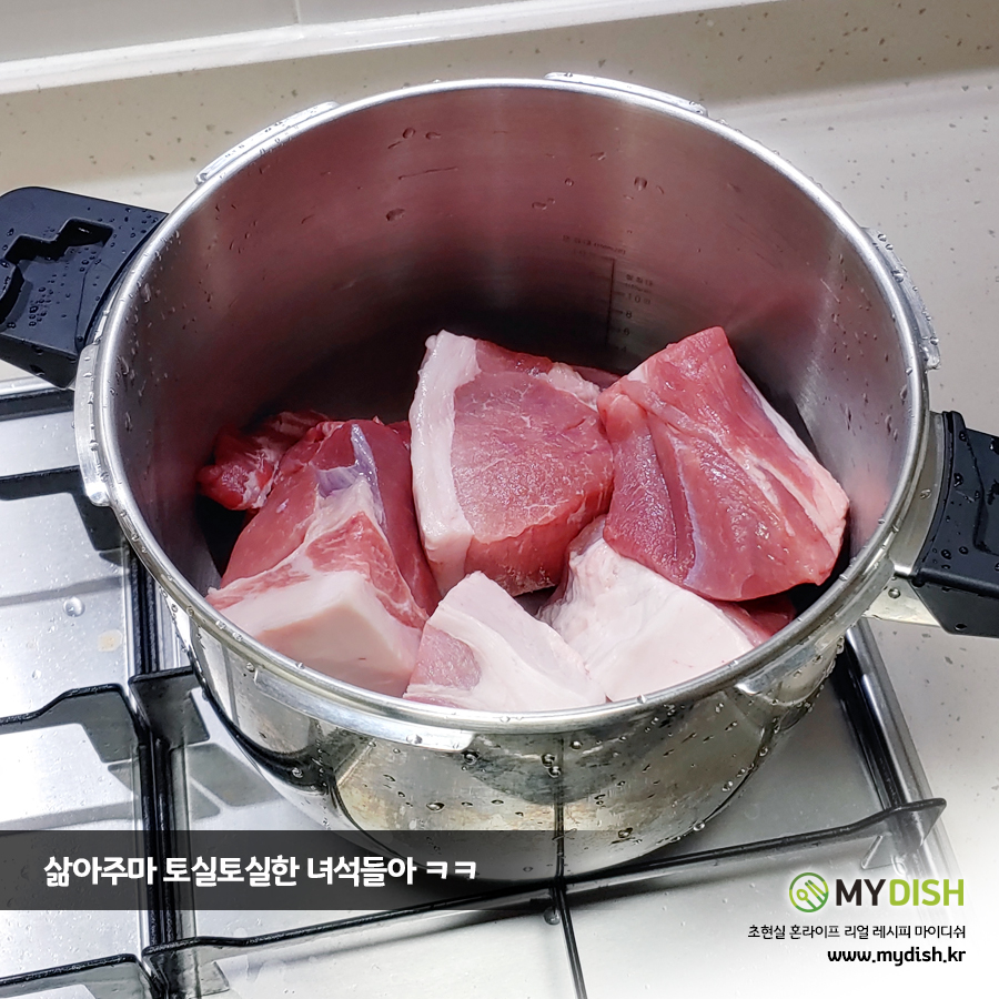 재료를 준비하는 과정에서 압력솥은 무조건 있어야 하는데... 그 이유는 고기를 더 부드럽게 먹기 위함이에요~